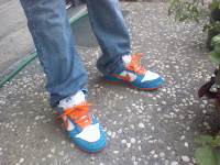 MATERIALS: The blue parts are suede, the rest is leather. Blue midsole (blue stitching), orange outsole. My pair came with blue small oval laces, which I swapped out with some fullylaced safety orange sb laces.